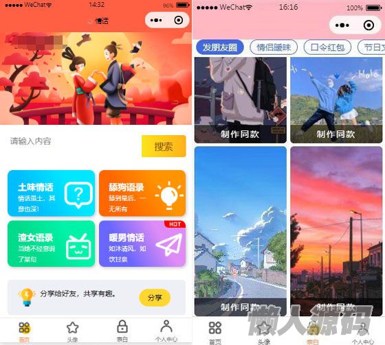 恋爱信封表白制作生成(内涵N种文案)、头像转漫画制作、土味情话、舔狗语录、渣女语录、暖男情话等等多种功能