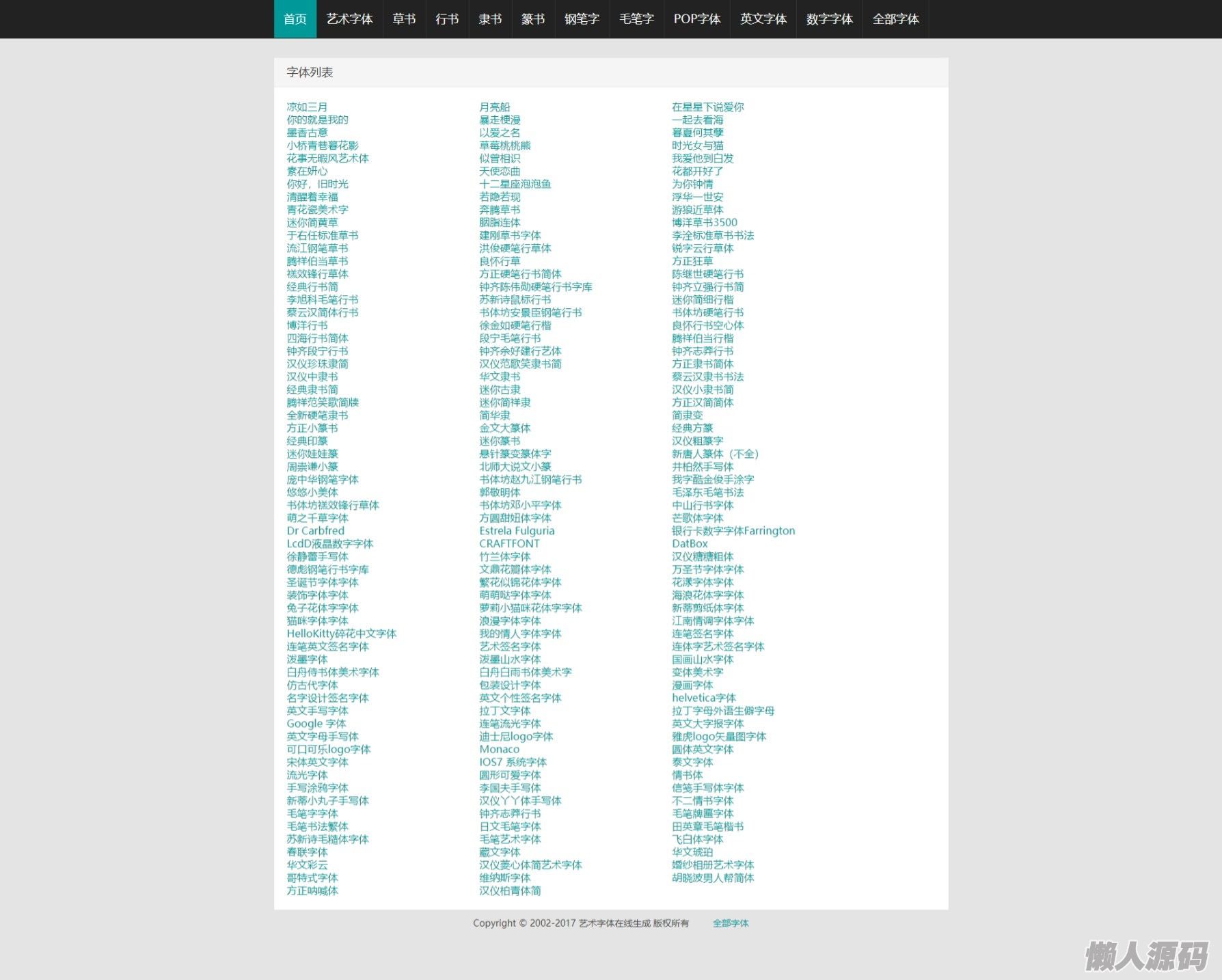 懒人源码 » 在线字体转换文字生成艺术字系统源码-支持自己添加字体/在线艺术字体转换器