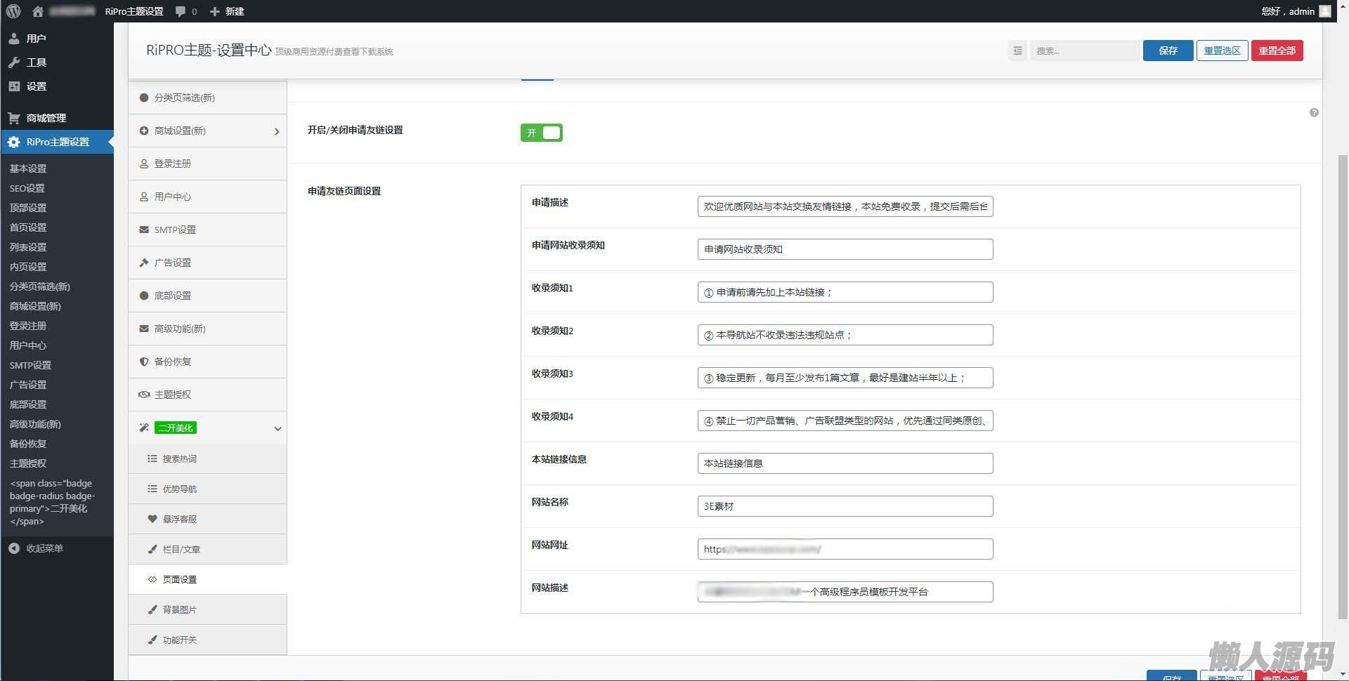 懒人源码 » ripro子主题eeesucai-child集成后台美化包(适用于设计素材站+资源下载站等)【站长亲测】