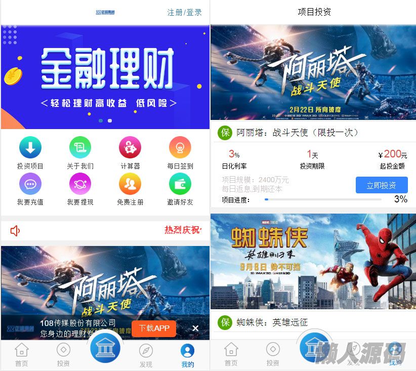 懒人源码 » 【金融理财系统】每日返利+影视投资+投资理财+积分商城+免签约支付系统+完美运营
