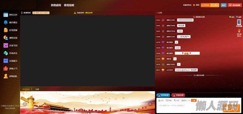 懒人源码 » 财经直播源码/房间多开/游客互动/聊天审核