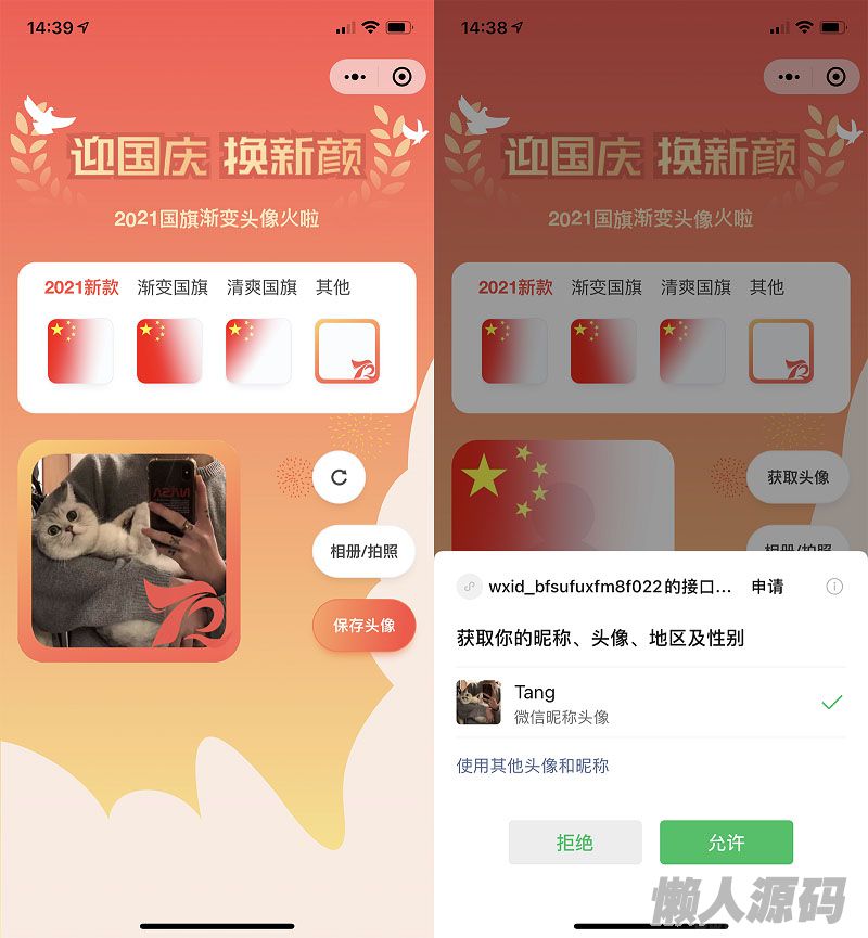 懒人源码 » 国庆节头像护旗手小程序源码_站长亲测