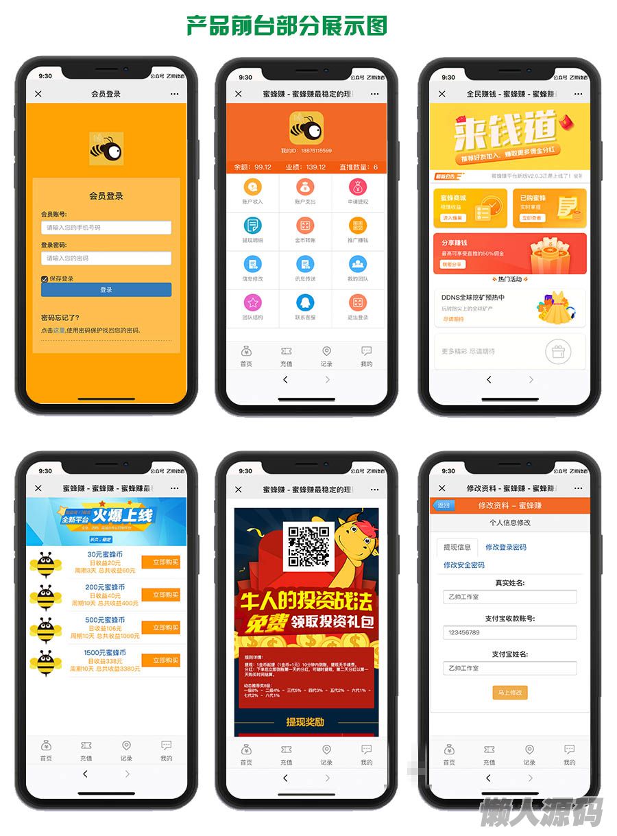 懒人源码 » 【蜜蜂赚运营版】养蜜蜂赚挂机赚钱+挂机理财分红+金融投资静态返利+资金盘+可封装APP