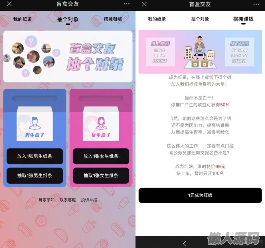 懒人源码 » 交友盲盒系统+免授权+分销代理+公众号盲盒源码