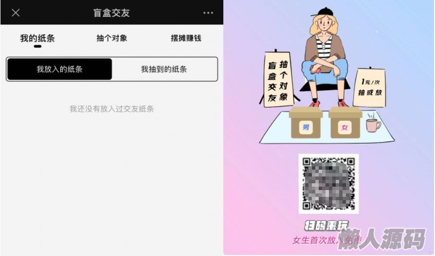 比如各大城市摆地摊的还有各大短视频平台上面流行的一元存联系方式一元取的这种盲盒相亲