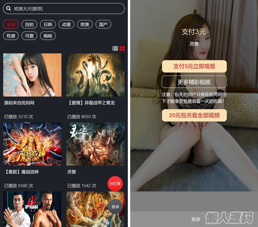 懒人源码 » 最新打赏系统云赏8.2 包天月季年视频打赏会员版 /影视付费系统 内置支付接口