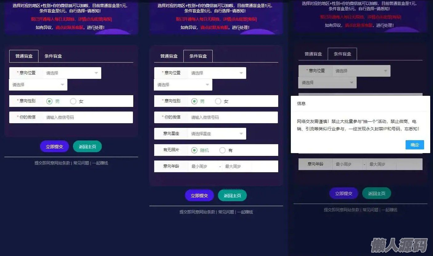 懒人源码 » H5脱单盲盒交友解密授权版V1.8.0分销提现存取小纸条盲盒匹配管理平台免签支付可封装APP带教程