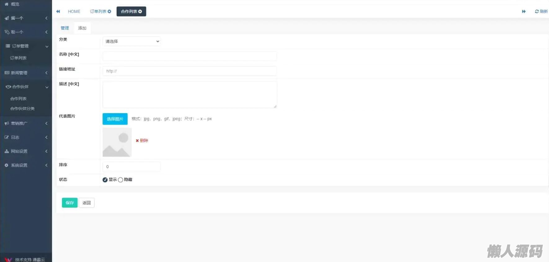 合作伙伴:可以发布/修改/合作伙伴信息,在首页底部展示;