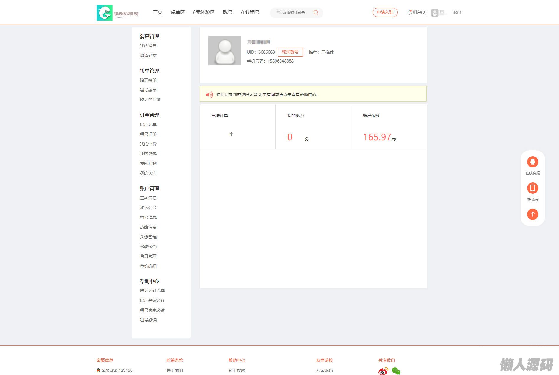 懒人源码 » 游戏陪玩系统/在线租号系统/小姐姐陪玩任务系统/网游主播任务威客平台源码/声优线上游戏任务系统网站源码