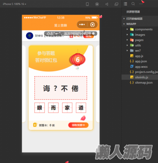 微信小程序在线成语接龙答题有奖1.5.1版源码