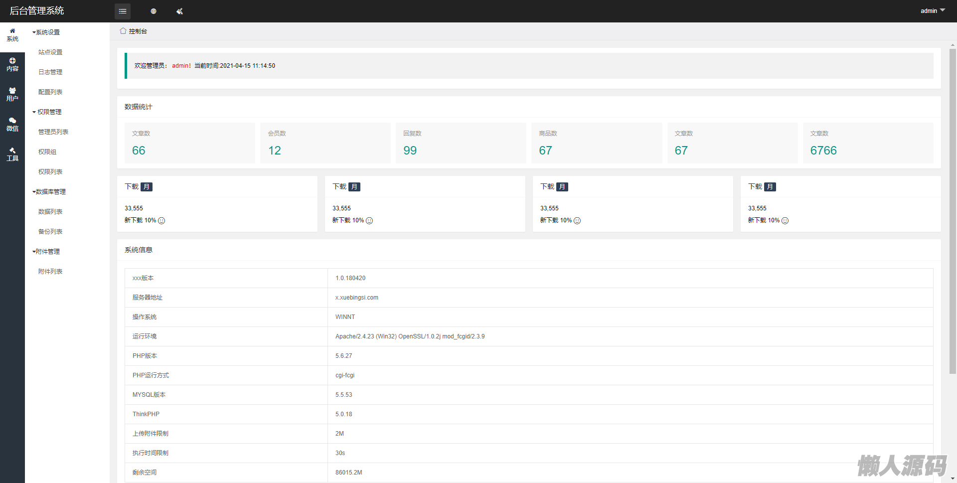 第五步:后台入口 http://您的域名/admin 默认账号密码 (超级:admin 123456)