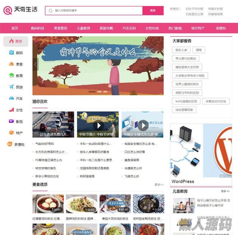 cms 7.5仿《天奇生活网》生活常识美食时尚综合资讯门户 网站源码 +手机版