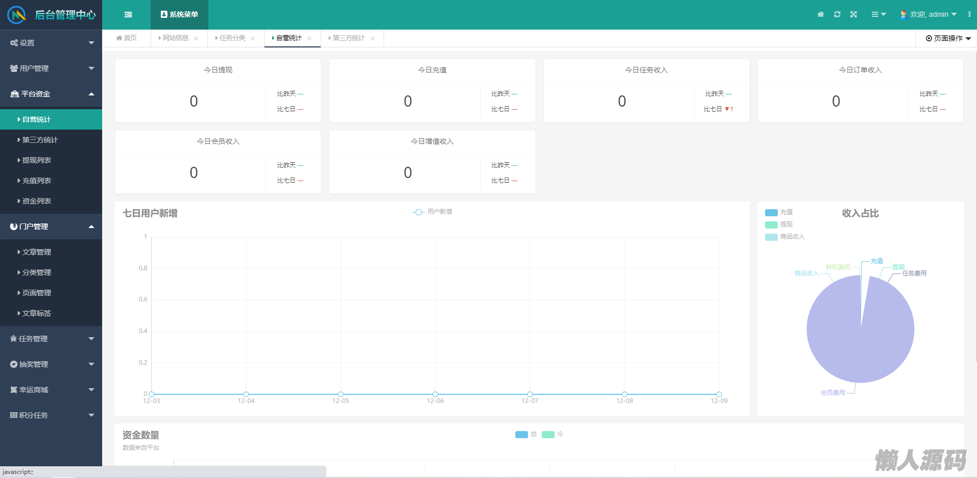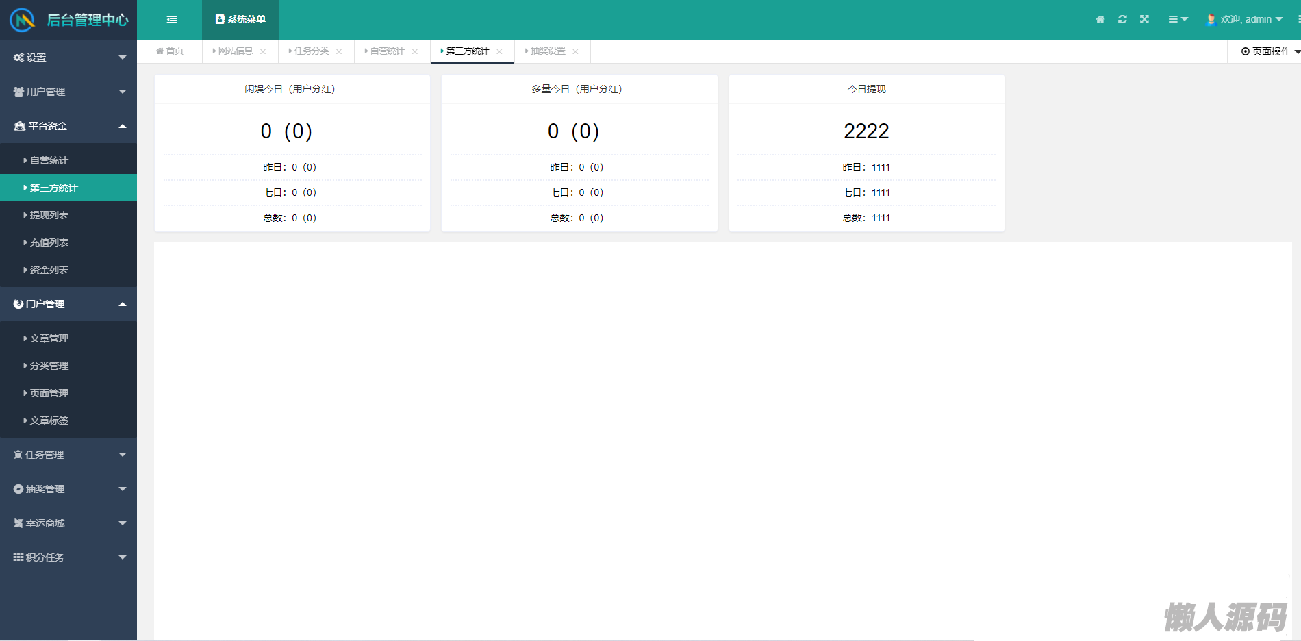 统计相关:包含联盟的财务统计,任务反馈统计。用户财务统计,以及平台数据分析。