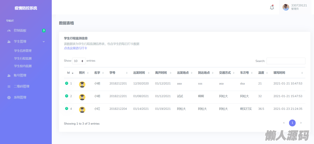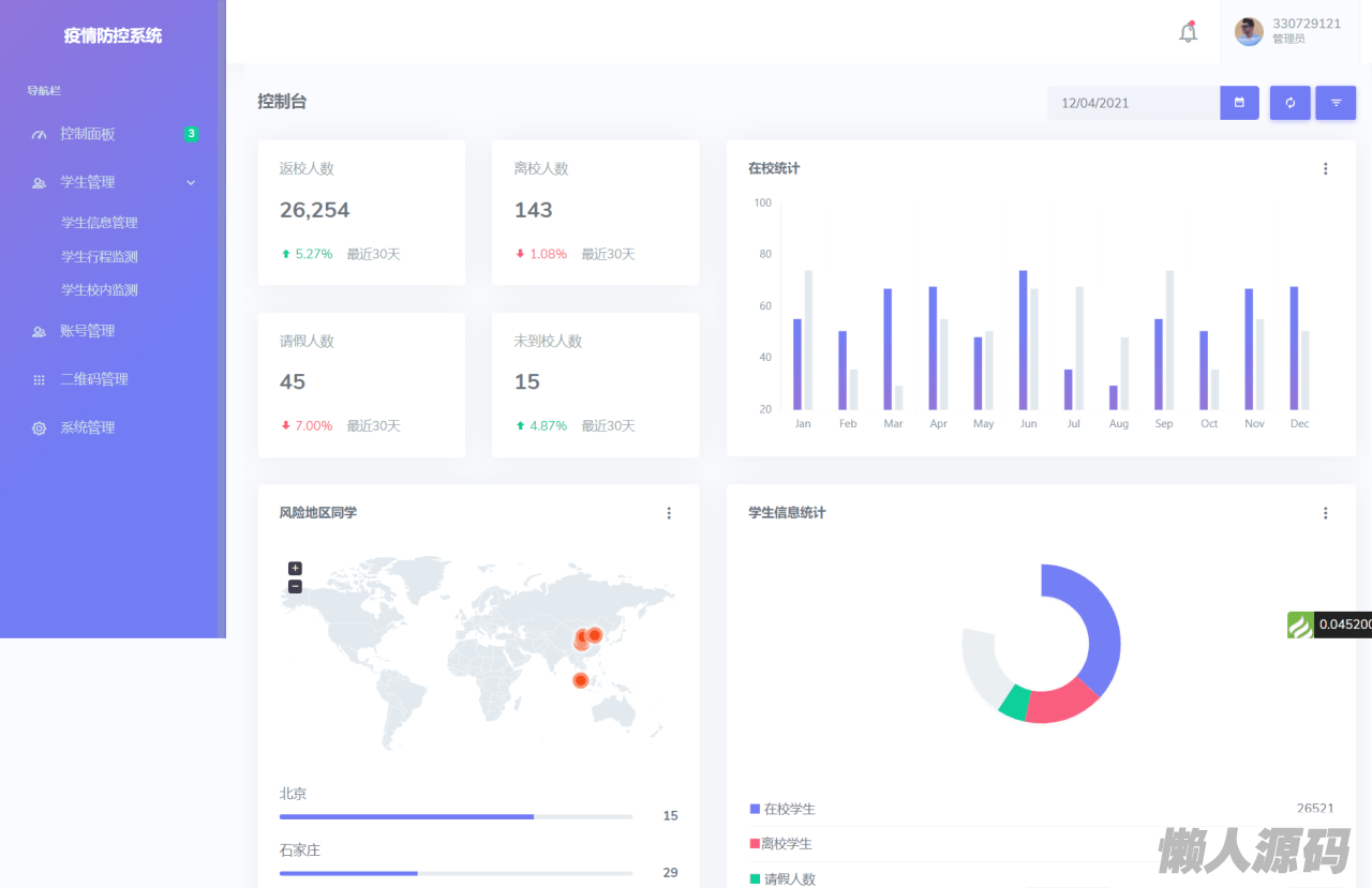 懒人源码 » thinkphp校园疫情防控进出登记管理系统源码
