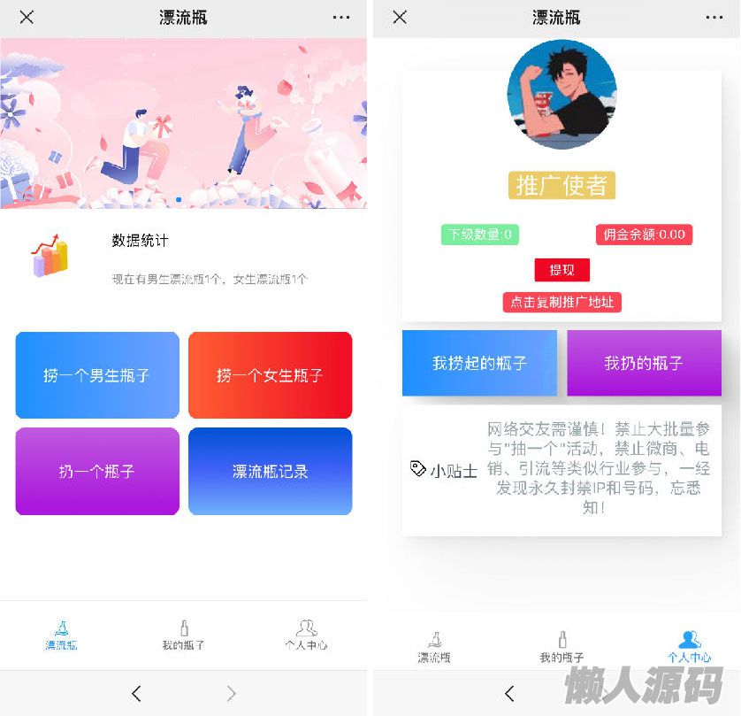 懒人源码 » H5漂流瓶交友源码 社交漂流瓶H5源码+对接Z支付+视频教程