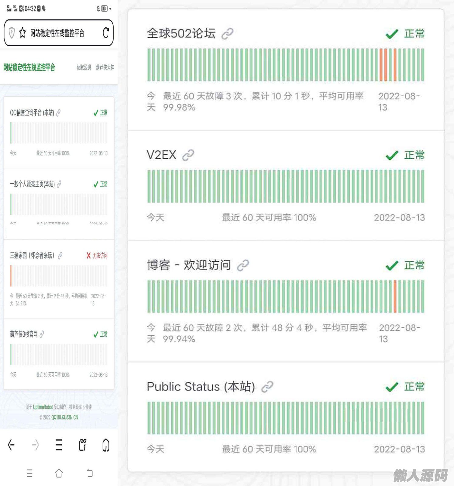 PS:源码仅对接UptimeRobot,做显示功能而已。