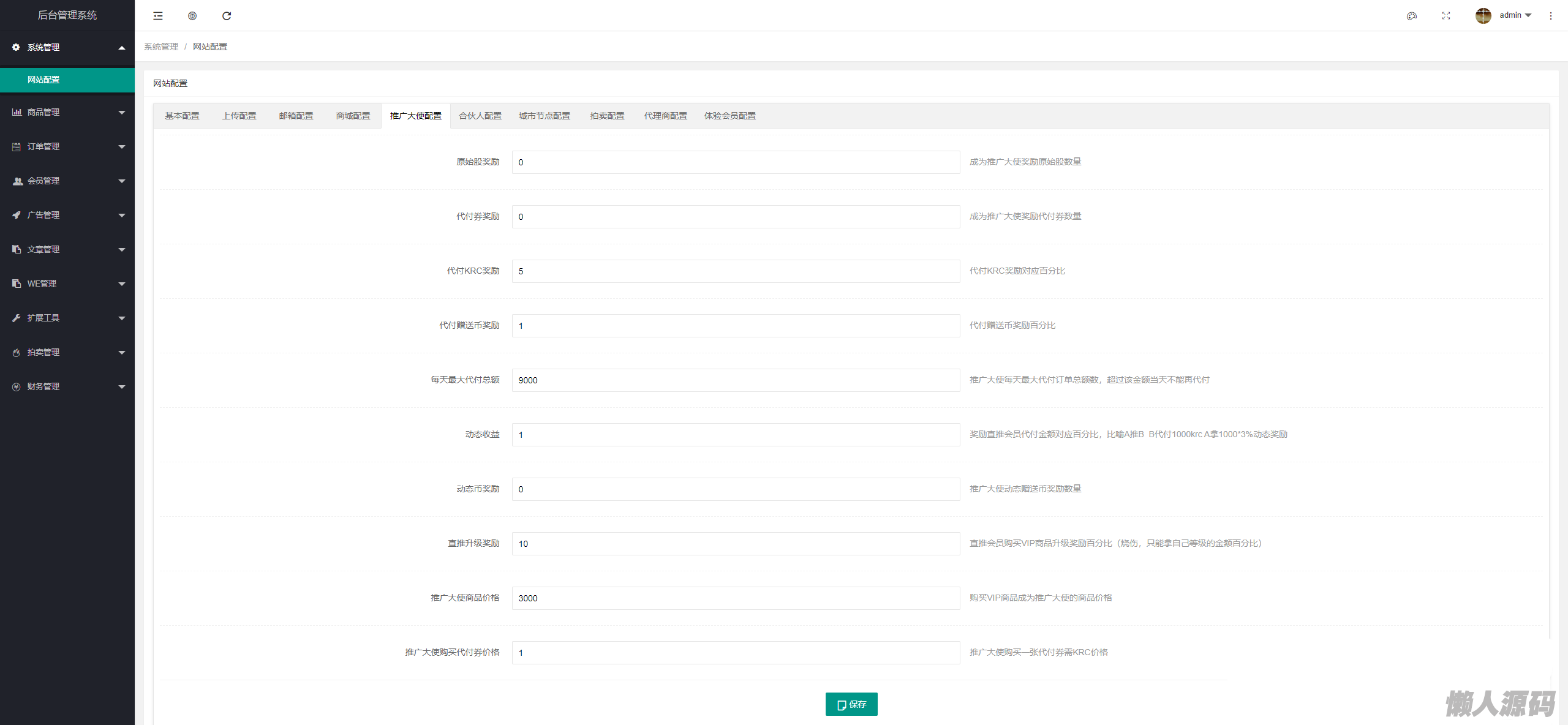 系统附带竞拍功能、推广功能、合伙人、支付功能、原始股等功能,反正看着比较的东西