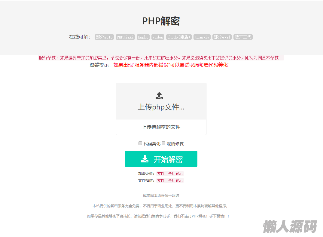 懒人源码 » 免费的PHP在线解密工具源码V1.2