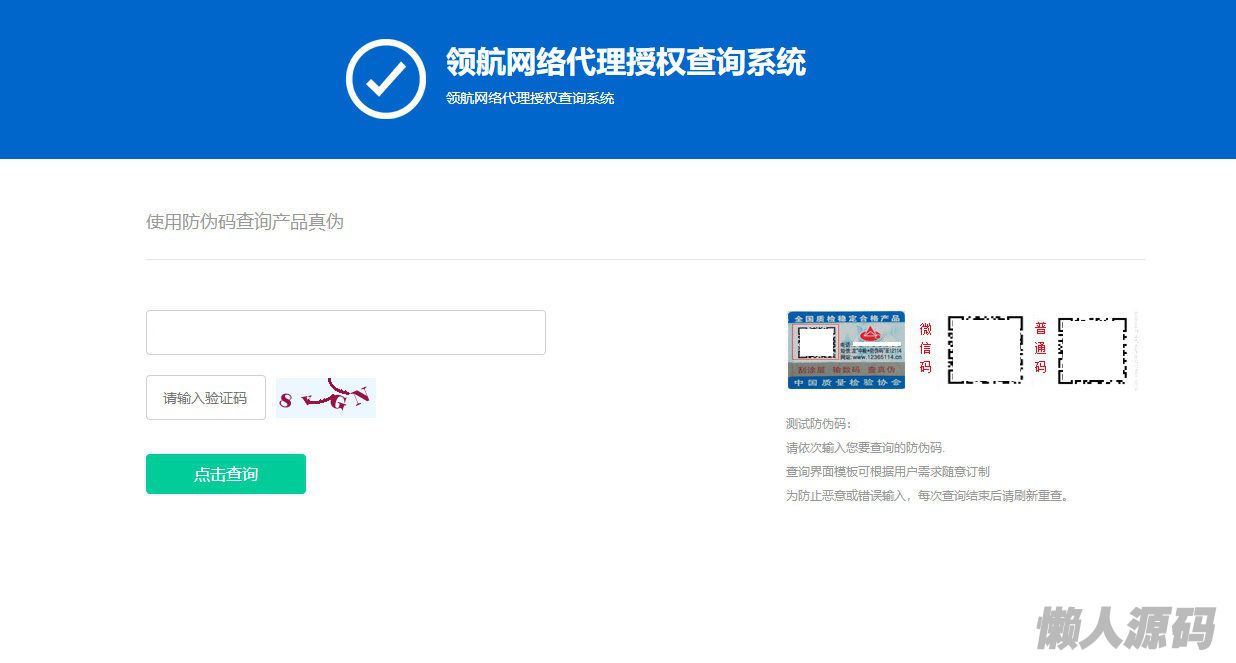 懒人源码 » 防伪和代{过}{滤}理授权查询系统网站源码V1.3