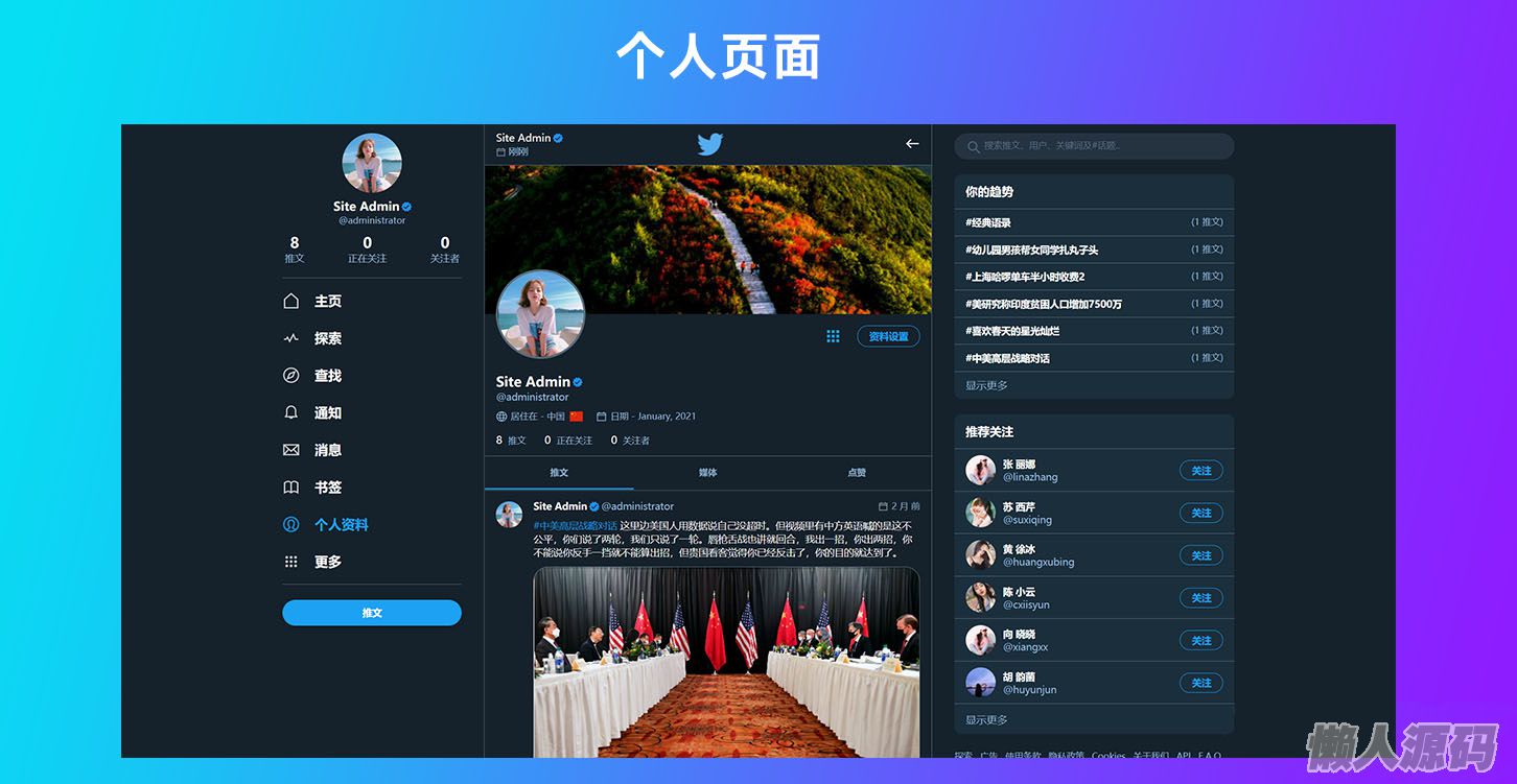 懒人源码 » 仿Twitter源代码 社交网络源码 基于脉聊二开版本 带详细安装视频