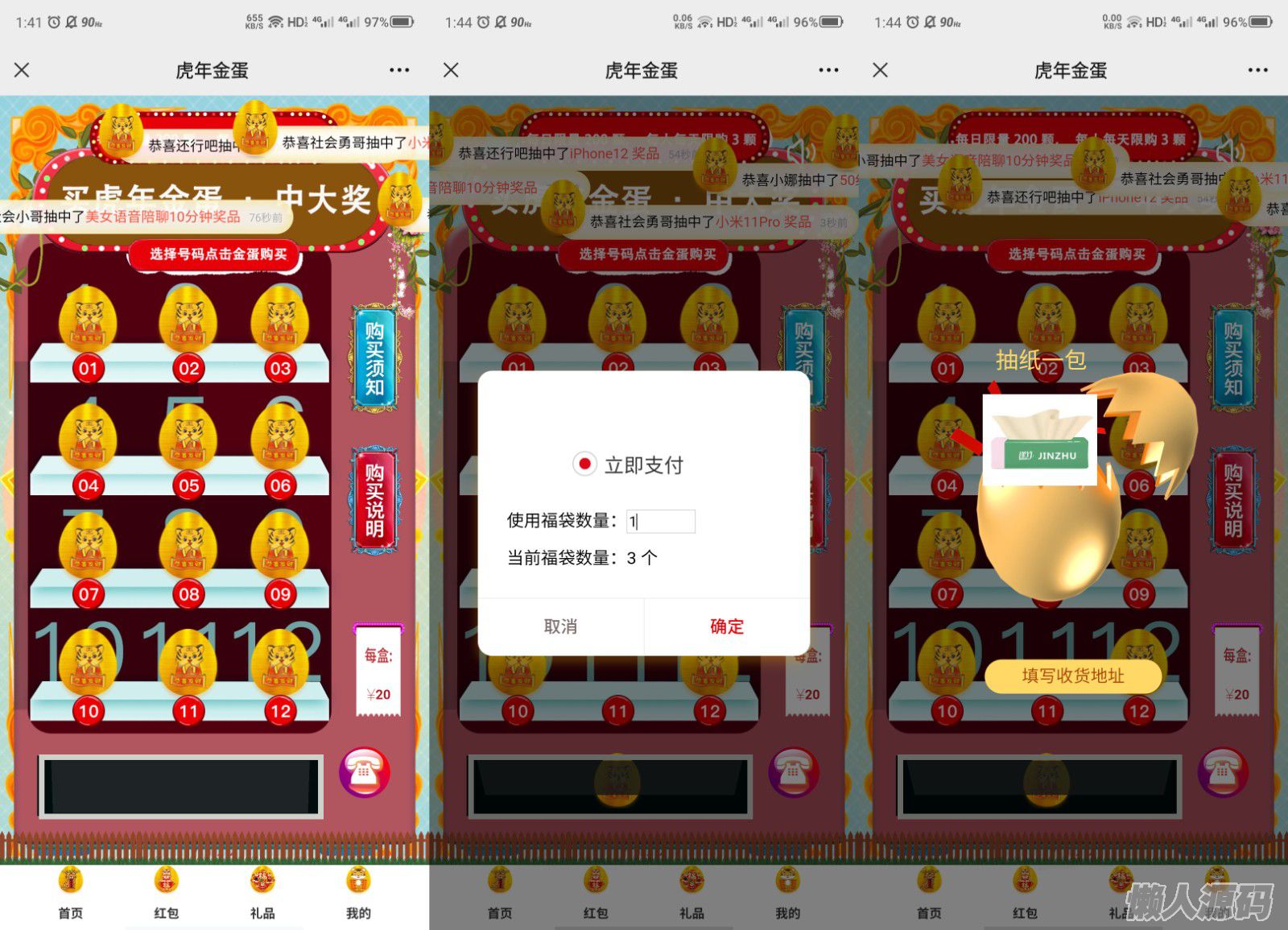 近很多人在找的虎年砸金蛋的源码,和礼物盲盒差不多,改成了砸金蛋的模式,自带