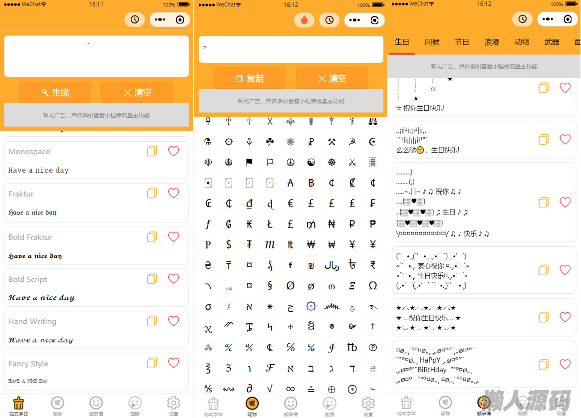 懒人源码 » 字体设计符号组合多功能微信小程序源码