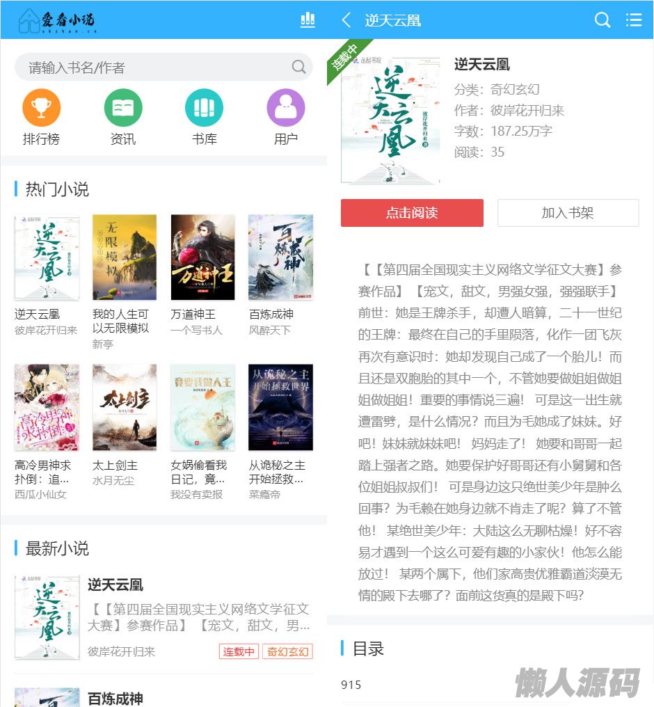 懒人源码 » 爱看小说网电子书源码全站打包