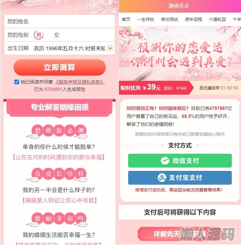 懒人源码 » 测桃花运网站系统源码