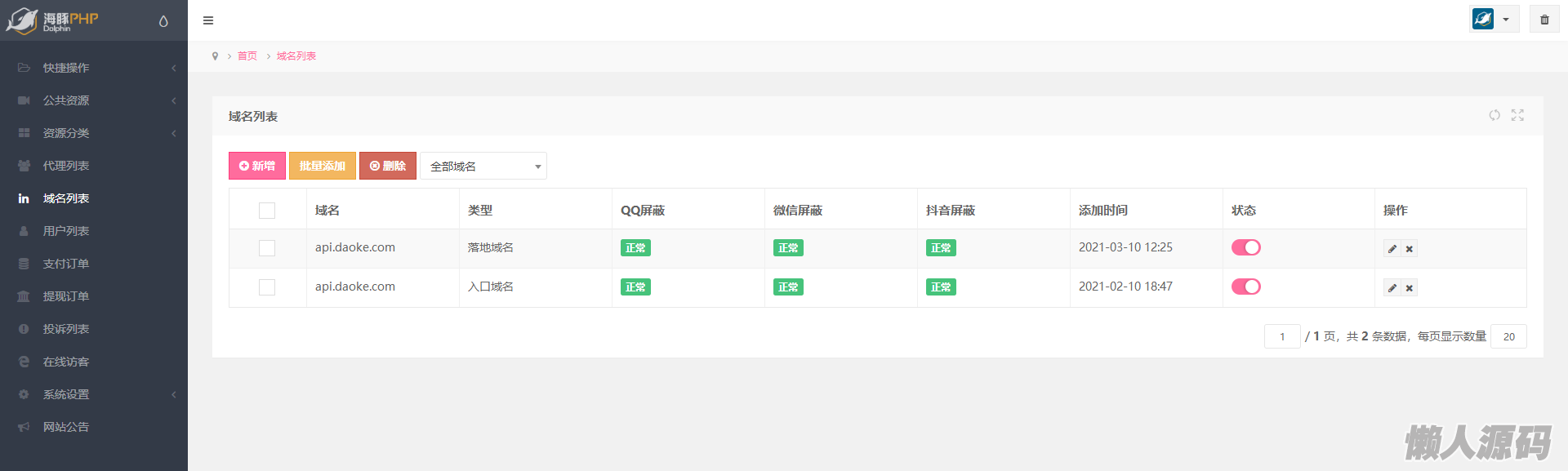这套系统是我从以前客户手里拿到的,完整可用,测试防红链接失效了,需要修改防红API即可!前端页面展示我就不放了,懂的都懂