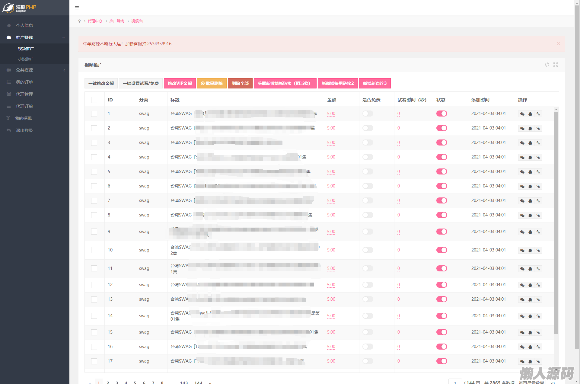 懒人源码 » 【全网首发】2022最新视频打赏系统全开源版本_附教程_站长亲测