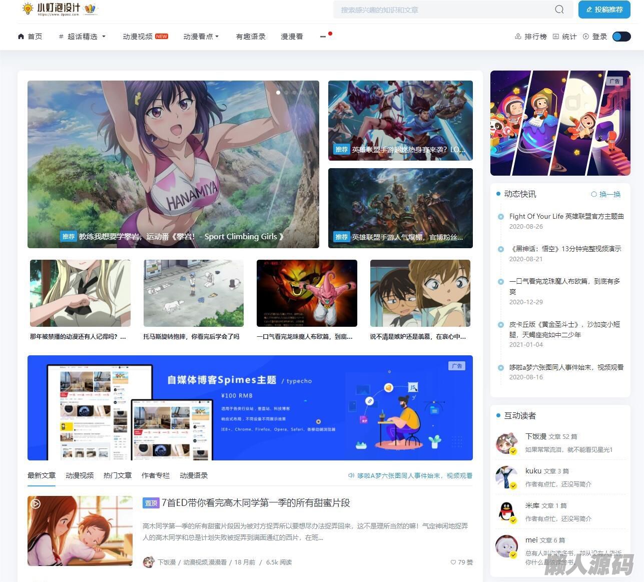 懒人源码 » 小灯泡自媒体博客Spimes4.6收费typecho主题模板无加密无授权源码下载