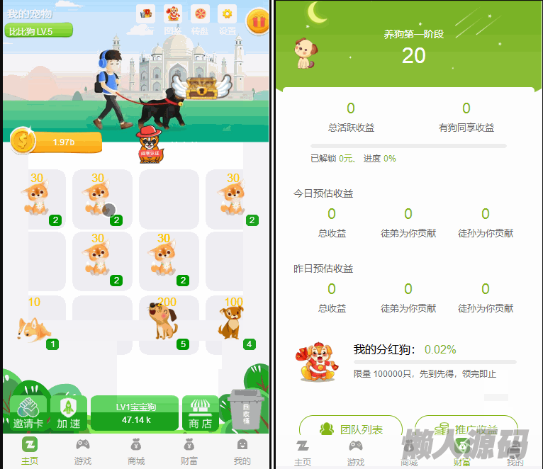 懒人源码 » 【全民养狗运营版】陀螺国际APP+区块链系统+宠物养成+挖矿合成+养狗养宠物+算力币+商城版