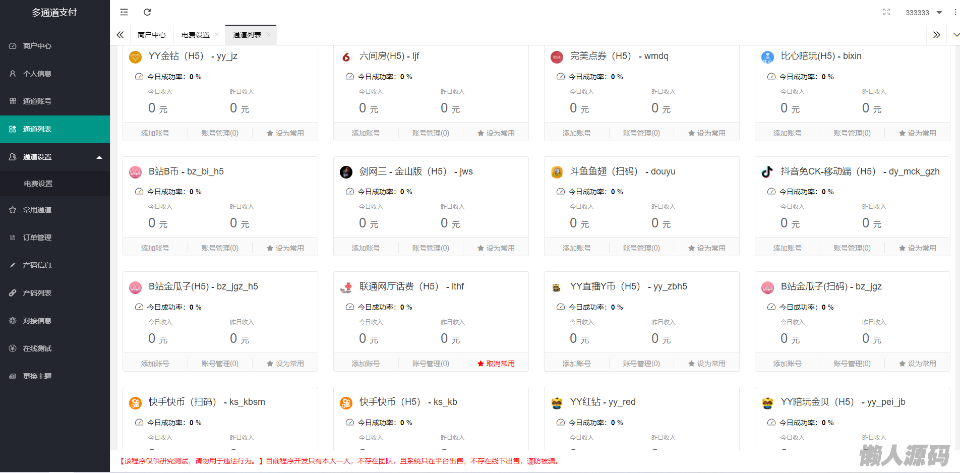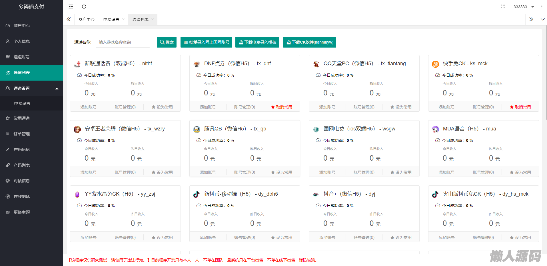 2021-11-16新增快手免CK通道修复快手H5和扫码通道修复YY紫水晶免CK通道(双端)更新YY币H5通道更新联通通道