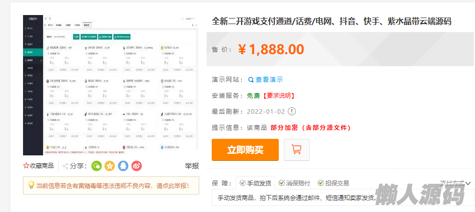 懒人源码 » 全新二开游戏支付通道/话费/电网、抖音、快手、紫水晶带云端源码_互站价值1888