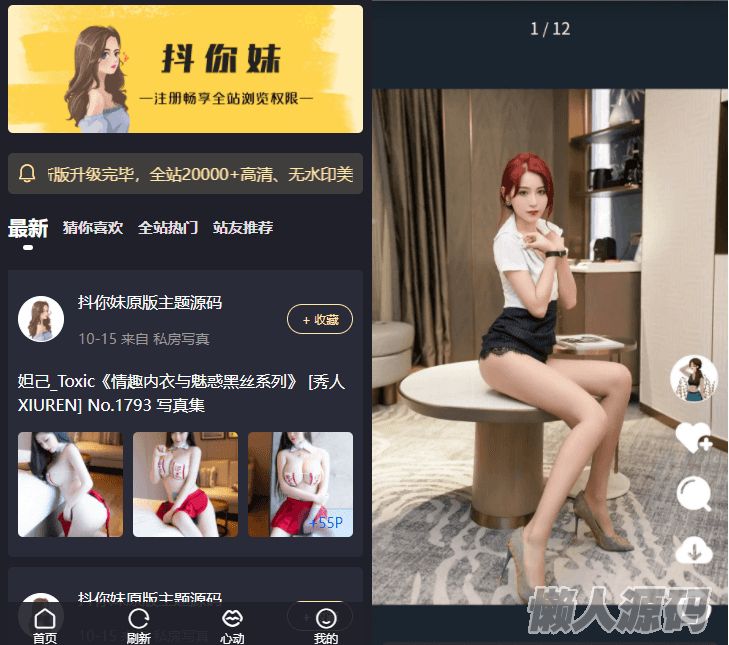 懒人源码 » 最新抖你妹原版主题源码仿抖音模式套图SEO源码_Wordpress图片主题