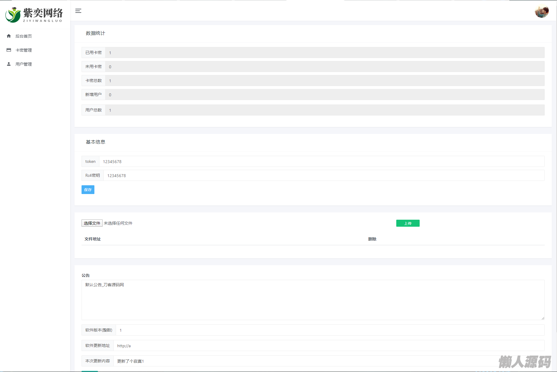 功能有 卡密系统 远程公告 远程更新 文件系统