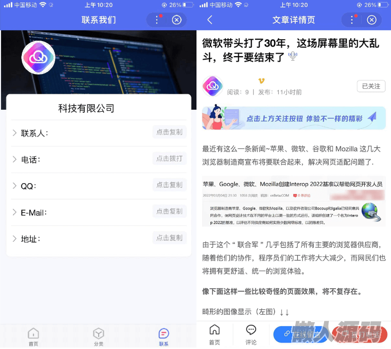 小程序端功能介绍首页,无限加载内容列表分类页,展示网站的全部栏目列表页,自动识别无图、单图、多图详情页,展示文章、相关、引导关注、播报、电话拨号、 智能客服 开关、互动组件在线留言,提交到网站在线留言网站端功能介绍自定义banner自定义金刚位可选择首页显示的栏目自定义详情页logo图、引导关注图片可选择是否启用 智能客服 支持后台小时级收录API支持后台天级收录API支持后台搜索组件资源提交