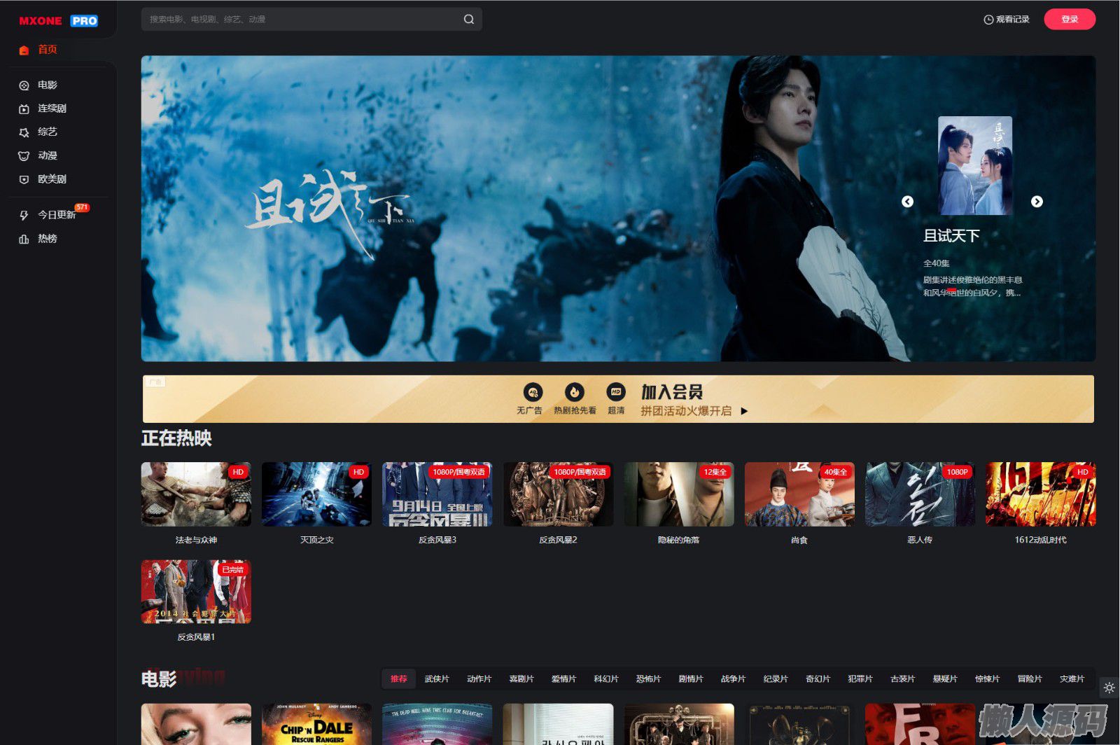苹果 CMS V10MXone Pro自适应模板 站长亲测 全网 此模板带有 暗黑模式 白天晚上自动切换