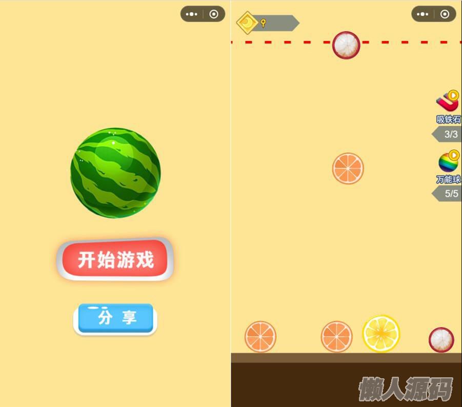 懒人源码 » 微信游戏小程序源码-合成大西瓜小游戏(合成版)源码 附带流量主功能