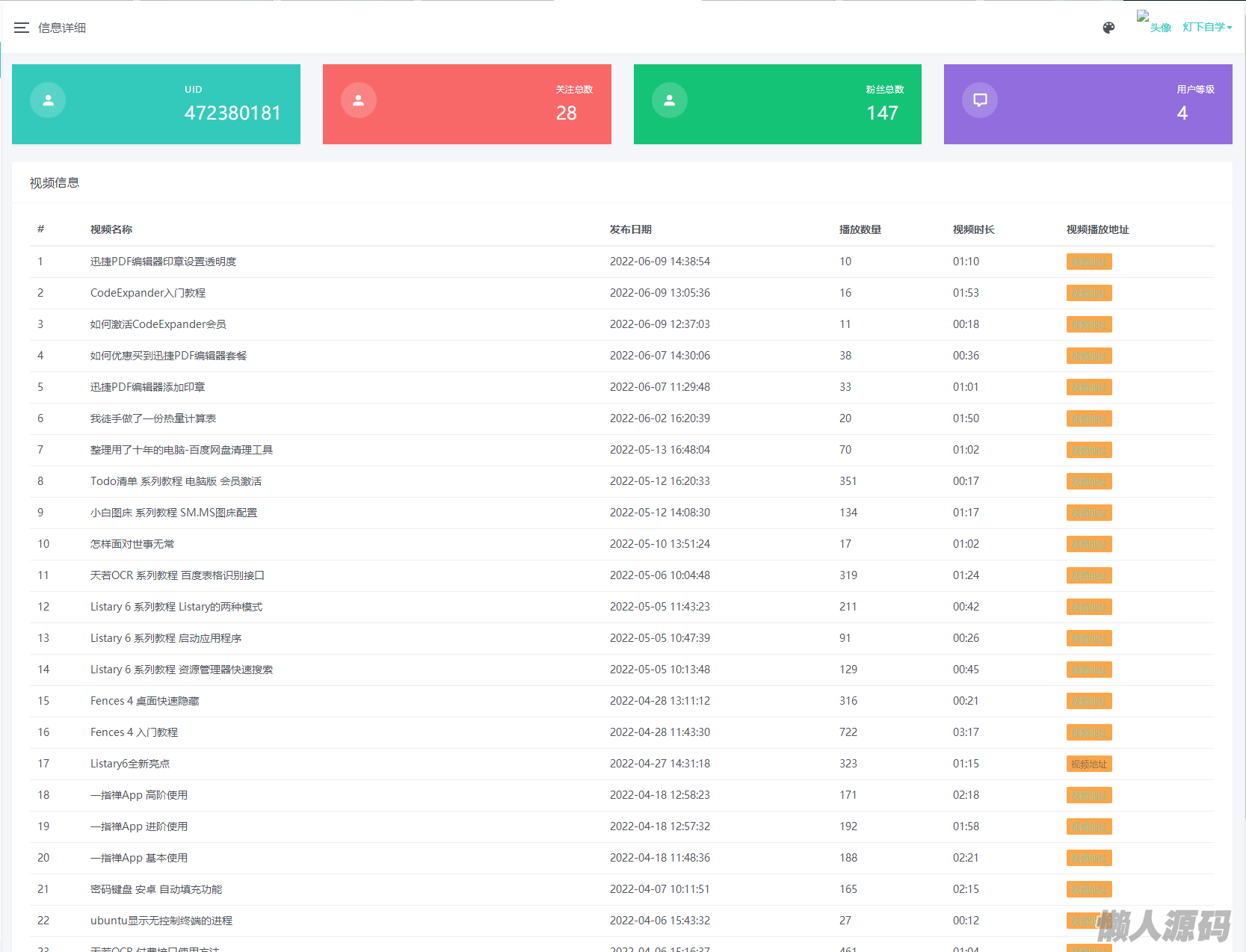 懒人源码 » B站UP主实时信息获取展示php源码
