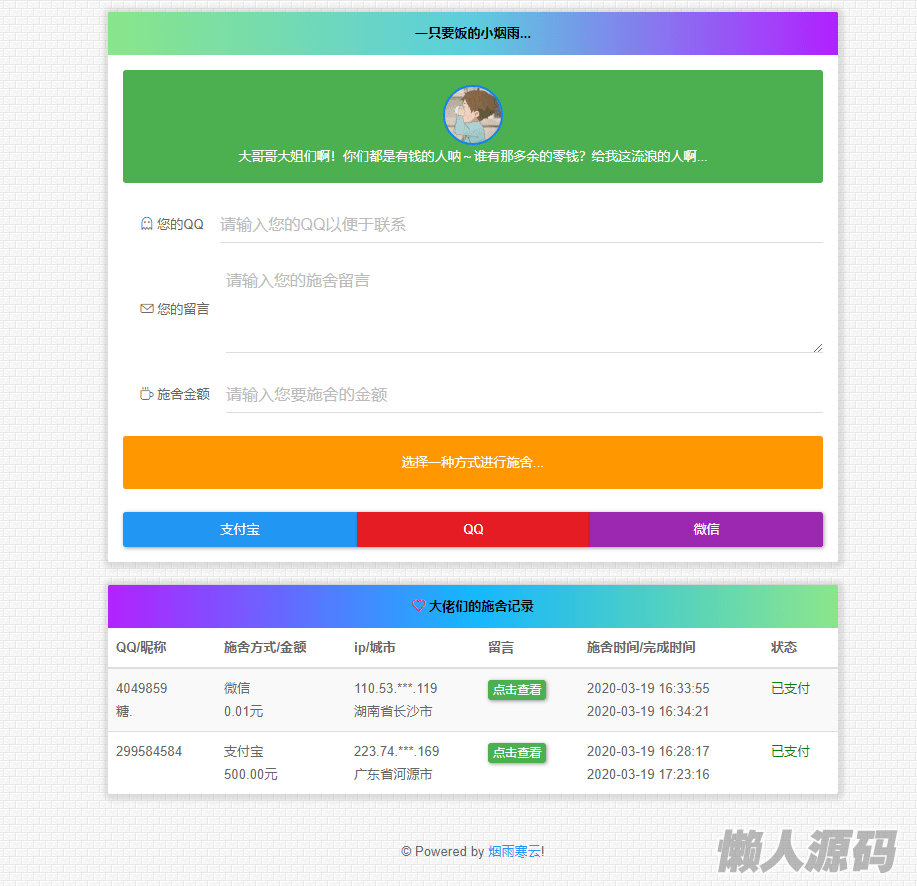 懒人源码 » 2022最新 在线要饭系统 V2.0
