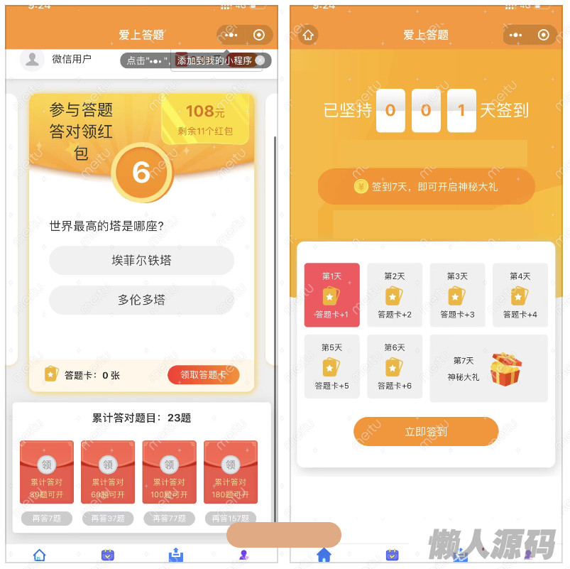 懒人源码 » 微信脑力比拼答题小程序_支持流量主带最新题库文件