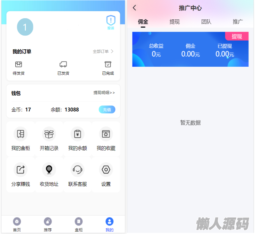 懒人源码 » 开源H5盲盒商城源码系统4.0|vue+TP5php框架开发开源网站+安装教程