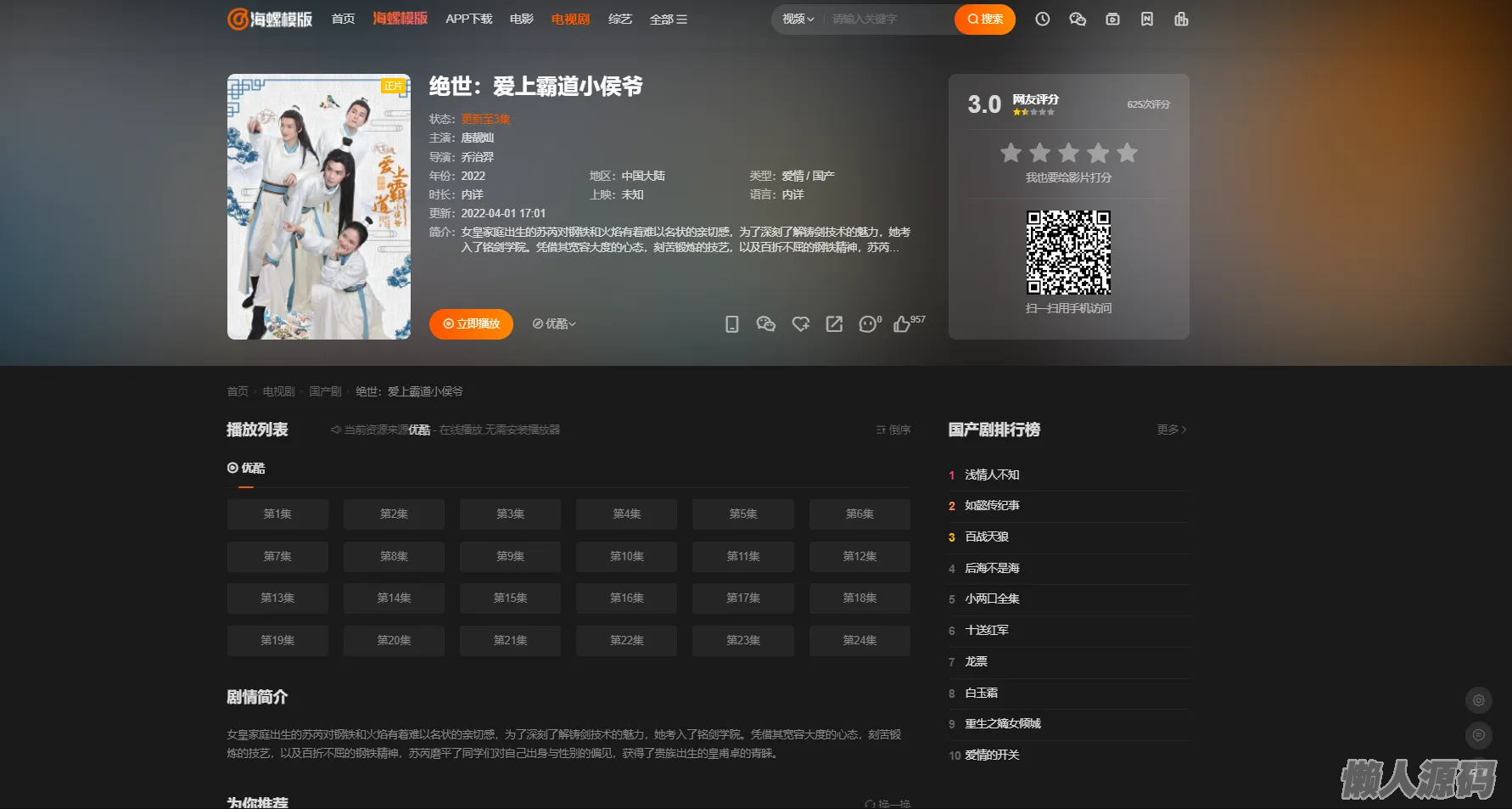 苹果 CMS 2022新版海螺影视主题M3.1版本,这个主题我挺喜欢的,之前也有朋友给我提供过原题,一直想要但是后来找了几个SG11的都表示需要大几百大洋,所以一直被搁置了。这个版本是完全的,无需 SG11加密 扩展也能用。