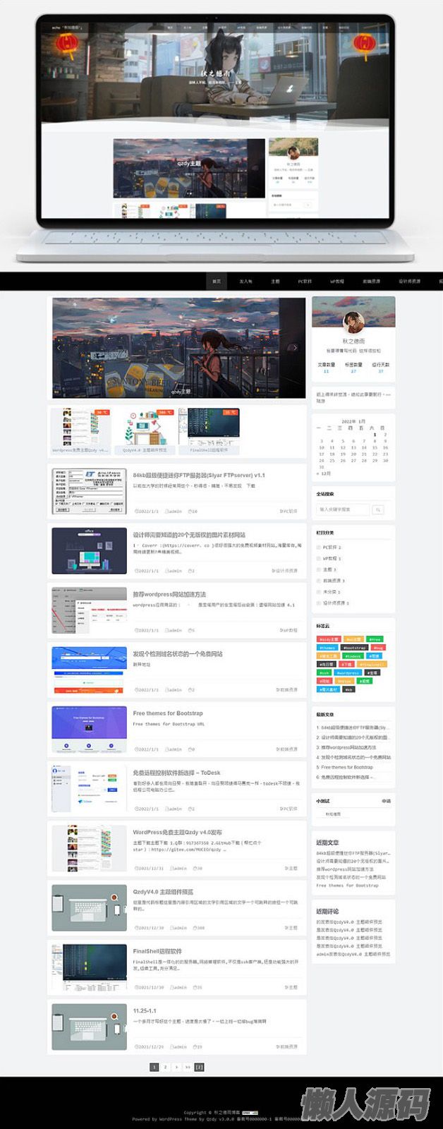 懒人源码 » 【免费】大气漂亮的Qzdy约极致博客主题WordPress主题免费分享给会员