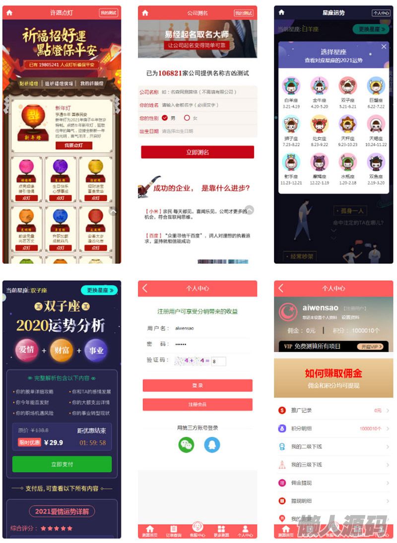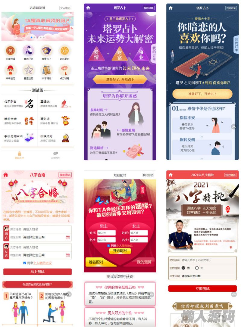 懒人源码 » 2021年全新算命付费测算网站源码 星座运势塔罗牌牛年运程宝宝起名姻缘等