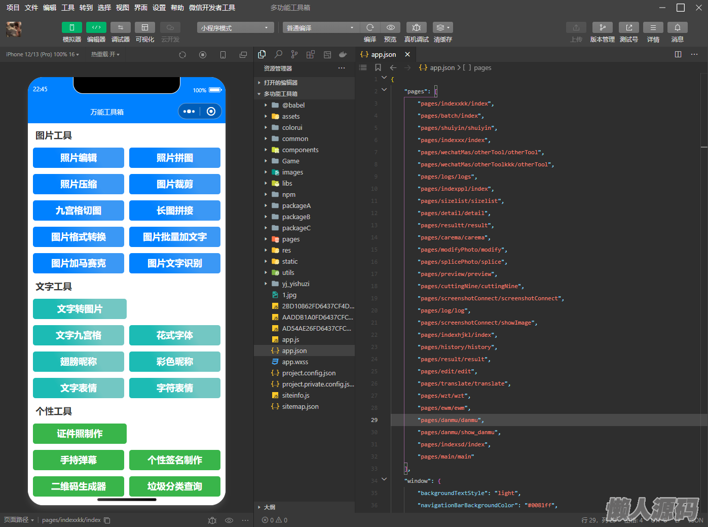 这是一款云开发超 多功能工具箱 组合 小程序 源码附带流量主功能,小程序内包含了40余个功能,堪称全能工具箱了,大致功能如下:
