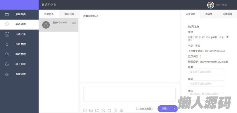 懒人源码 » PHP精美在线客服系统源码_电脑端+手机端自适应 带安装教程