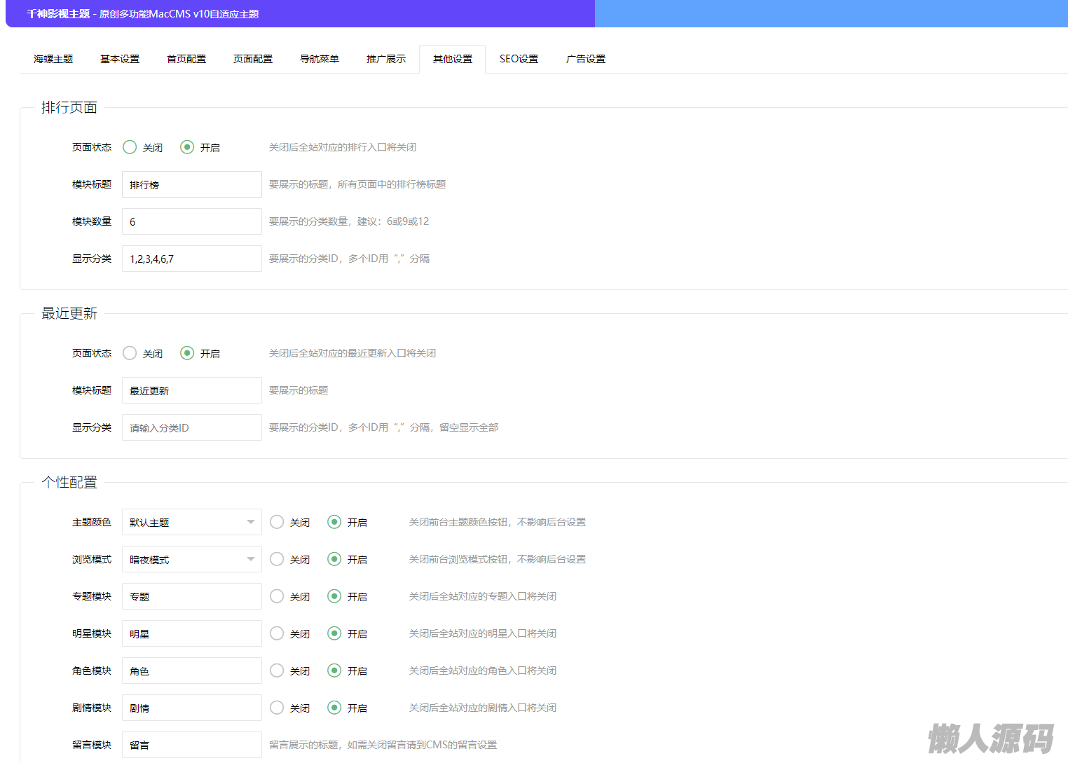 后台点开自定义菜单配置 在下方添加:主题设置,/admin.php/admin/conch/theme