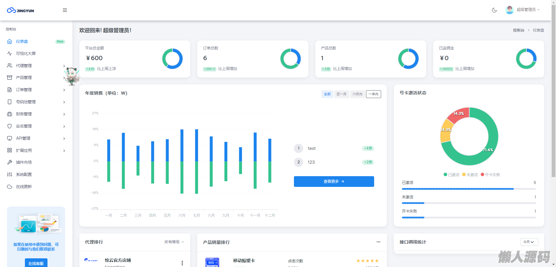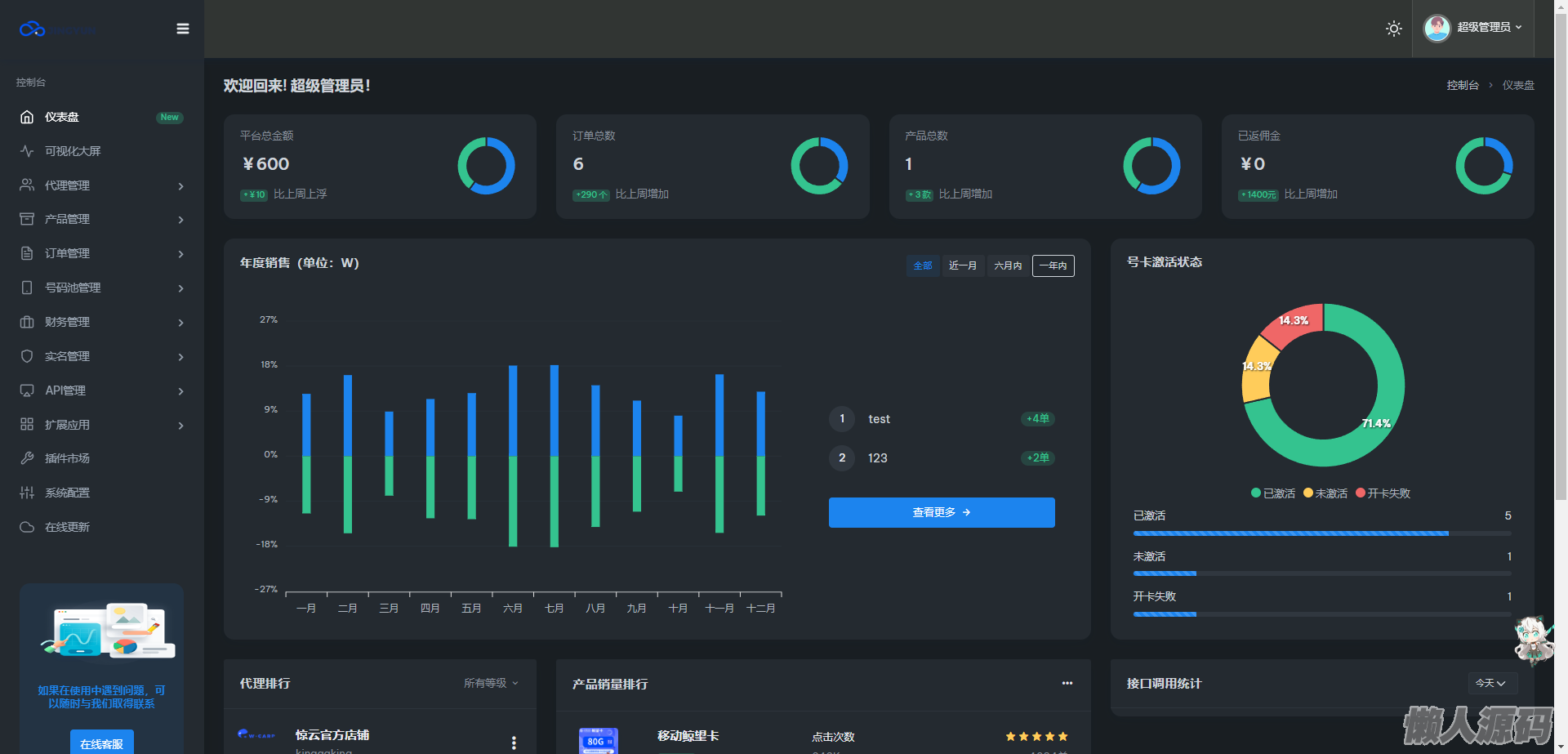 懒人源码 » 多功能号卡推广分销管理系统 流量卡推广分销网站源码